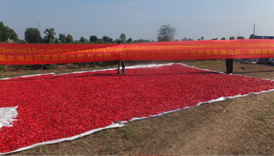 二、匡老五辣業(yè)除了有大型規(guī)范的種植基地外,同時(shí)配套了相應(yīng)的3000多噸的標(biāo)準(zhǔn)化冷庫(kù),以及處理烘干80多噸鮮椒的蒸汽烘烤流水線設(shè) 備,即能掌控辣椒的干度,又保證干辣椒色澤的均勻紅亮。