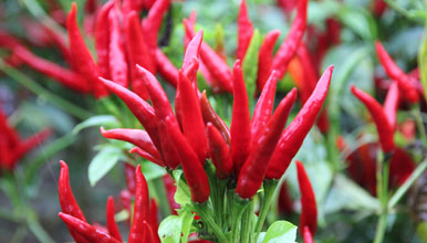 顏色油亮 新鮮紅太陽辣椒果實顏色油亮,干制后不易花皮裂皮,商品性好。 |